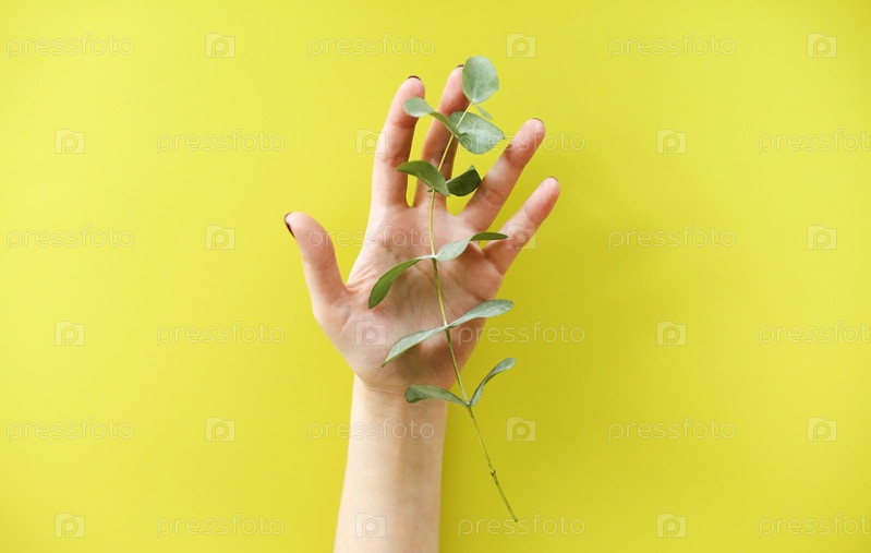 Женщина держит ветку зеленого растения