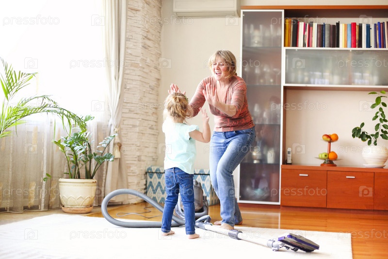 Бабушка и внучка убирают комнату вместе