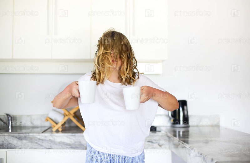 Женщина с двумя чашками кофе утром