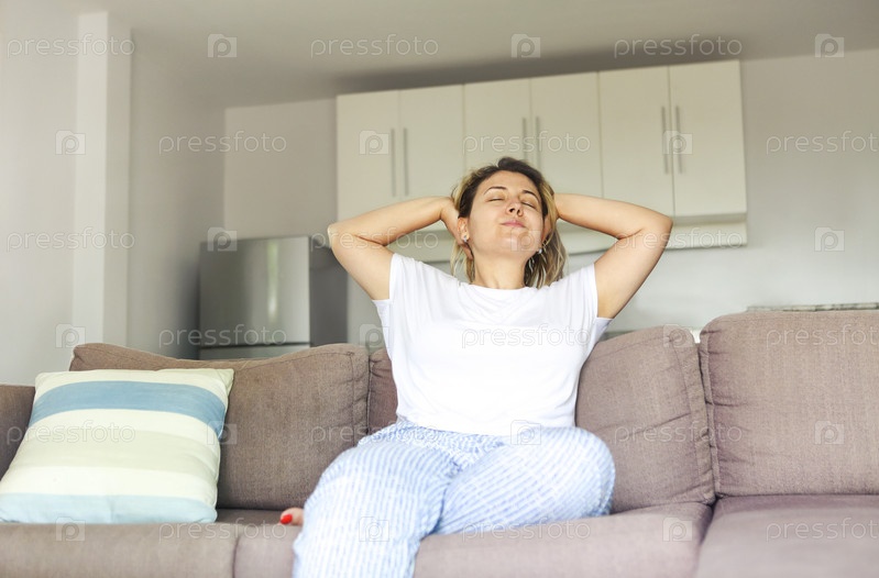 Молодая женщина растягивается после пробуждения