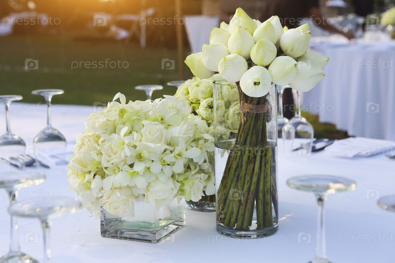 Обеденный свадебный стол с белым лотосом
