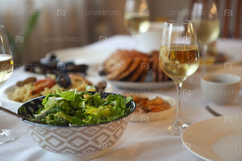 морепродукты и белое вино