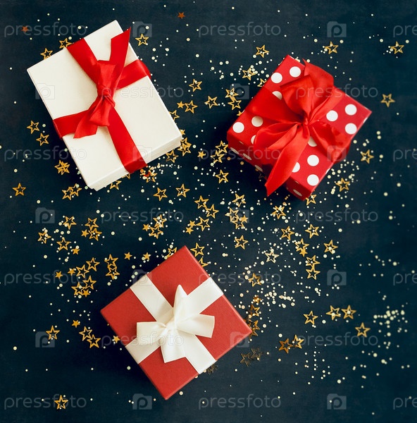Рождественские подарочные коробки на столе