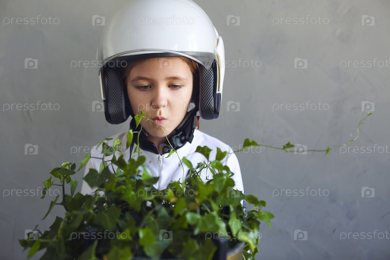 Футуристическая девочка-космонавт в белой форме и шлеме