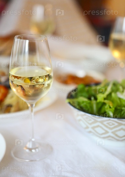 морепродукты и белое вино