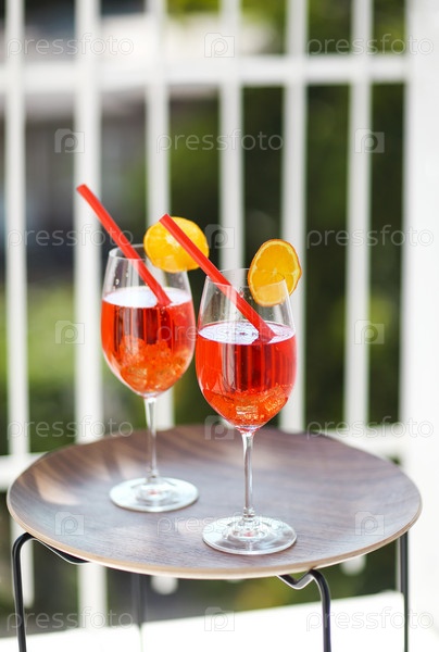 Два апельсиновых коктейля на деревянном столе
