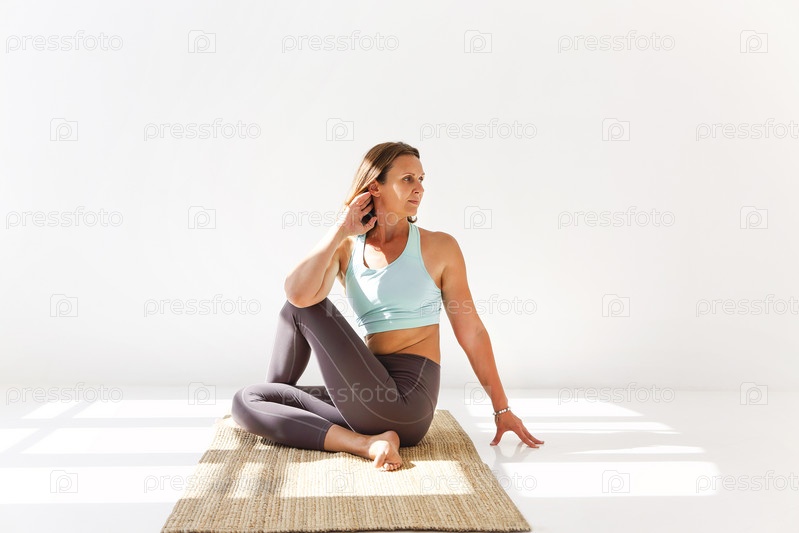 Гибкая женщина занимается йогой дома