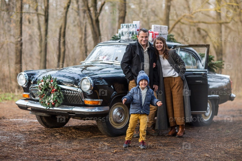 Стильная пара с сыном в парке. Концепция праздника