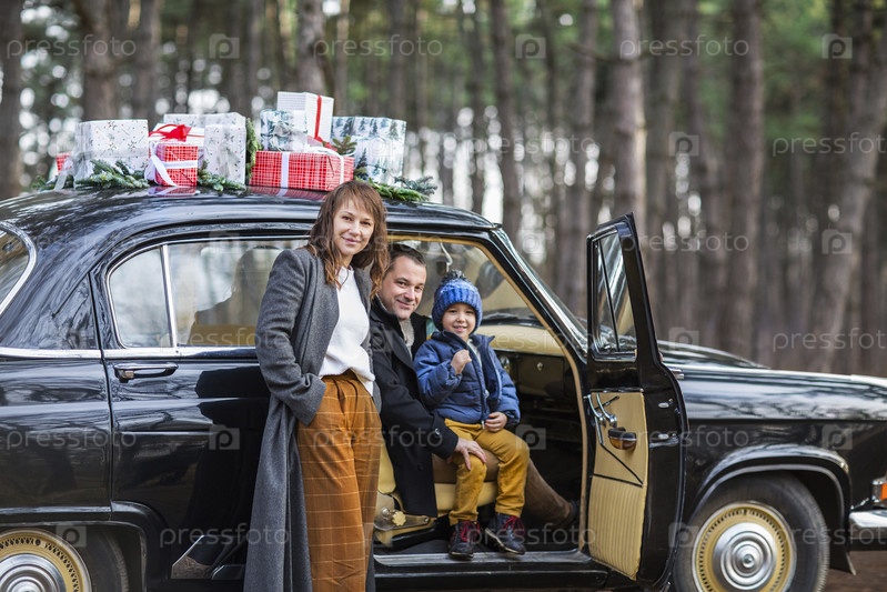 Стильная пара с сыном в парке. Концепция праздника