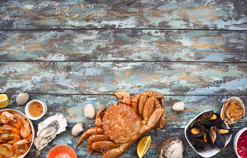 Свежее разнообразие морепродуктов на столе