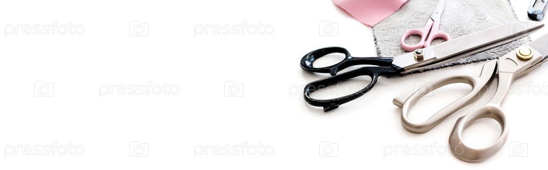 Швейная фурнитура для раскроя ткани: портновские ножницы и лоскуты ткани