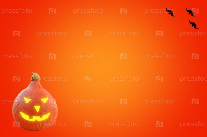 Оранжевая тыква с лицом на оранжевом фоне. абстрактный баннер, жуткое 3D-рендеринг