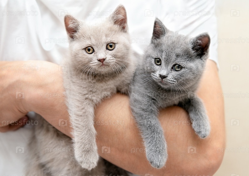 Британские котяна сидят на руках у мужчины