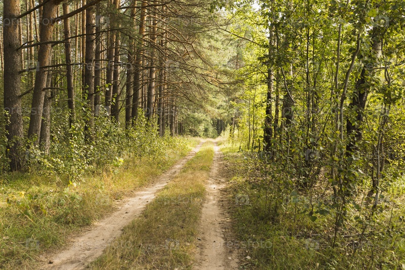 Дорога в лесу в солнечный летний день