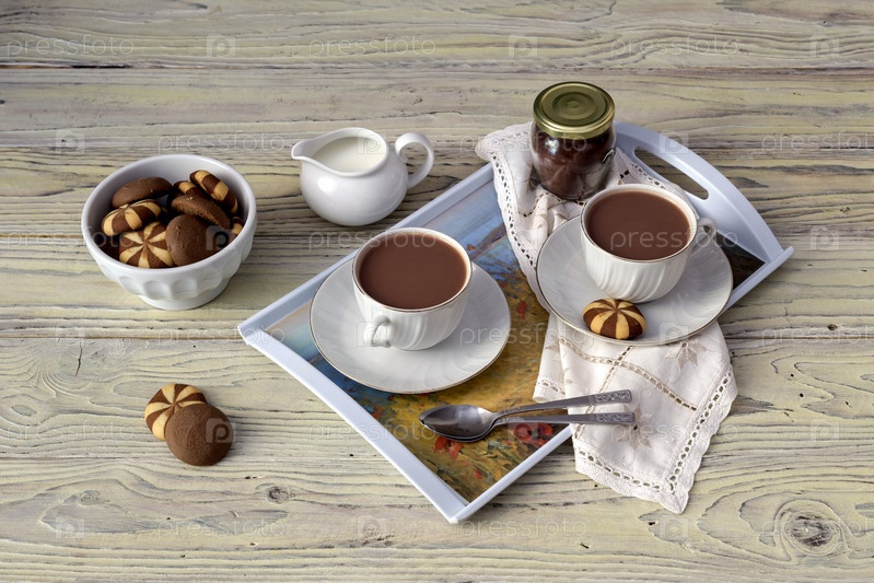 Чашки с какао на деревянном столе