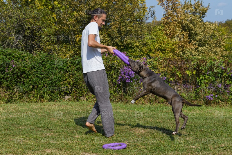 Мужчина тренирует амстафф