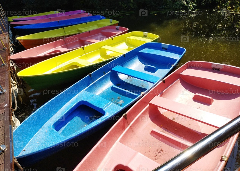Разноцветные лодки у причала в московском парке Кузьминки