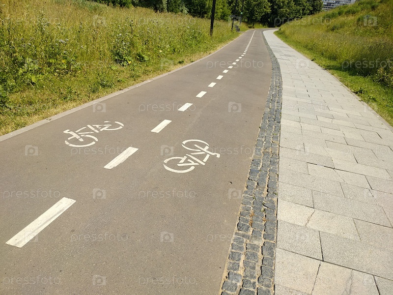 Двухполосная велосипедная дорожка в парке Митино летним днем