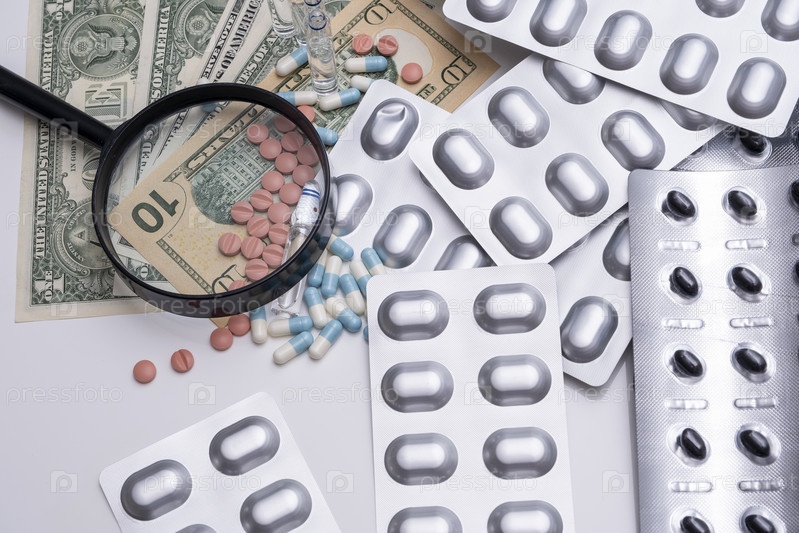 Разнообразное лекарство свалено в одну кучу и лежит на столе