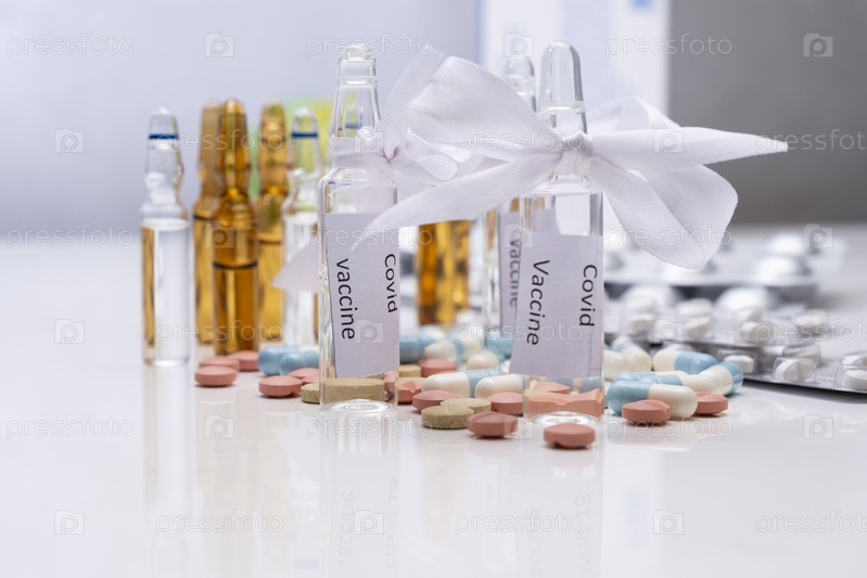 Набор разнообразных лекарств на белом столе