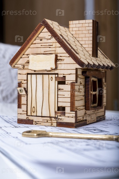 Макет дома и ключ на фоне проекта