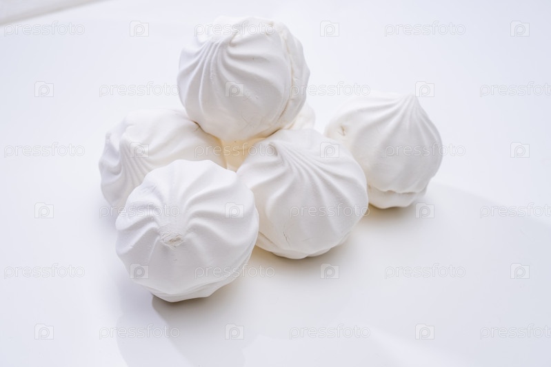 Белый зефир лежит на белом столе. Десерт