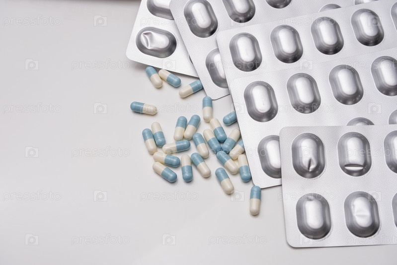 Разнообразное лекарство свалено в одну кучу и лежит на столе