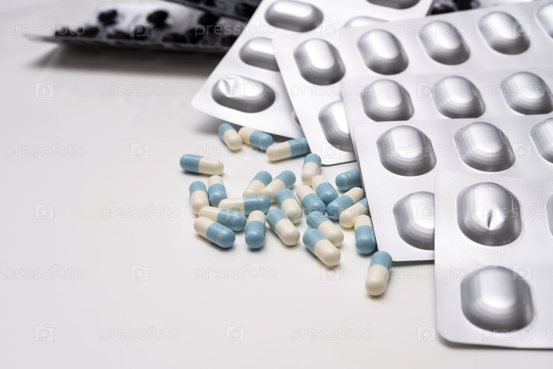 Разнообразное лекарство свалено в одну кучу и лежит на столе