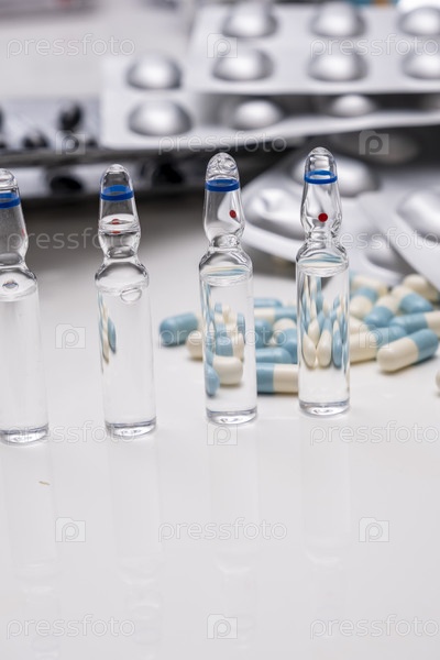 Разнообразное лекарство свалено в одну кучу и лежит на столе