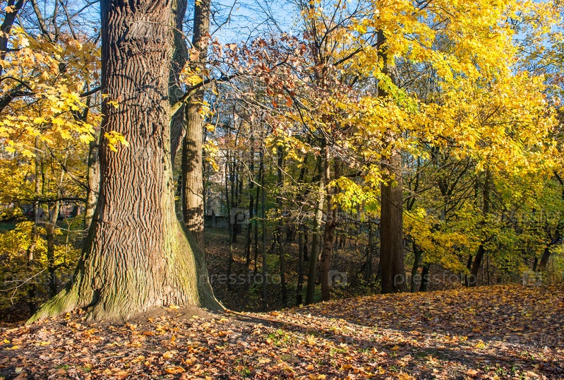 Большое старое дерево в лесу в осенний день