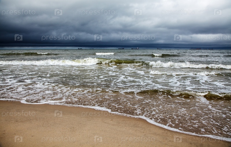 Морской пейзаж в хмурый осенний день