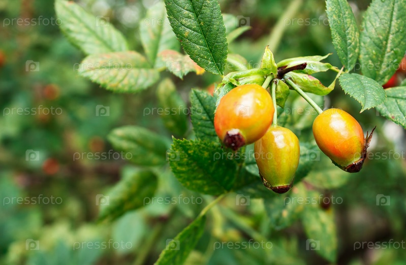 Плоды шиповника в саду в осенний день