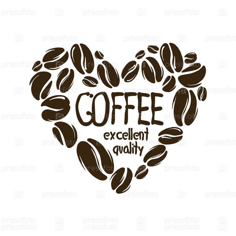 Сердце кофейных зерен на белом фоне. логотип на белом фоне