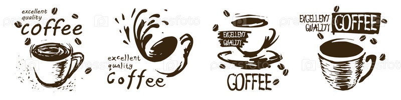 Набор нарисованных логотипов кофейных чашек на белом фоне