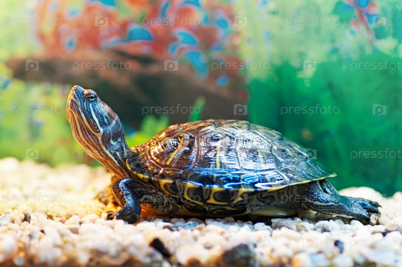 Слайдер пруда на берегу в террариуме