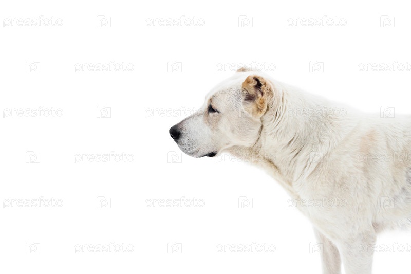 Среднеазиатская овчарка Алабай белого окраса с палевыми пятнами на белом фоне