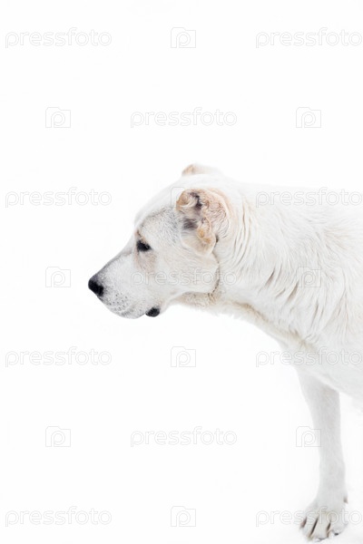 Среднеазиатская овчарка Алабай белого окраса с палевыми пятнами на белом фоне