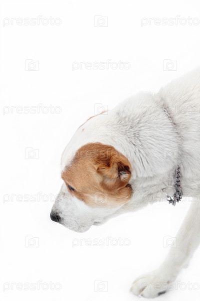 Среднеазиатская овчарка Алабай белого окраса с палевыми пятнами на белом фоне