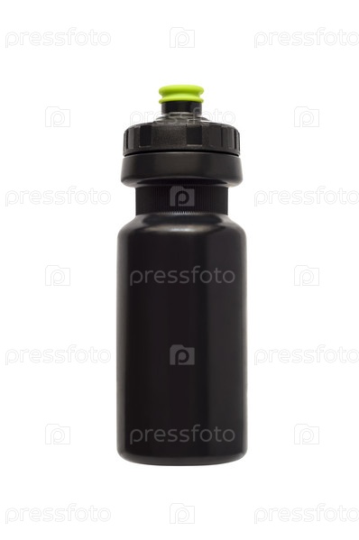 Черная бутылка с водой для фитнеса и велосипеда изолирована
