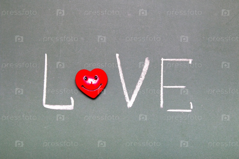 Надпись любовь на зеленой доске, сердце вместо буквы о, концепция дня святого валентина