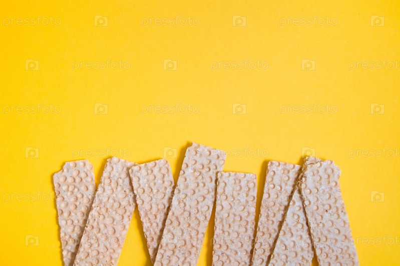 Хлебные чипсы на желтом фоне
