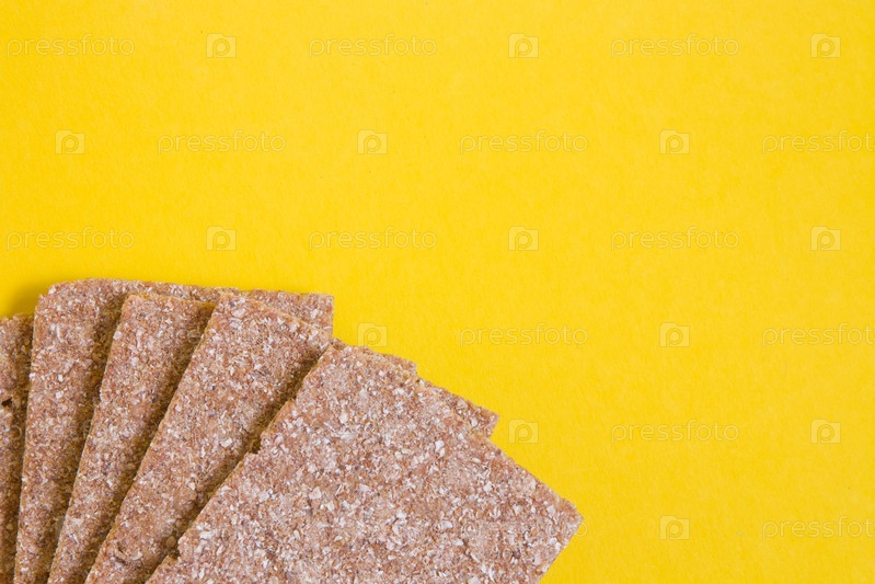 Чипсы из ржаного хлеба на желтом фоне копией пространства, концепция здорового питания