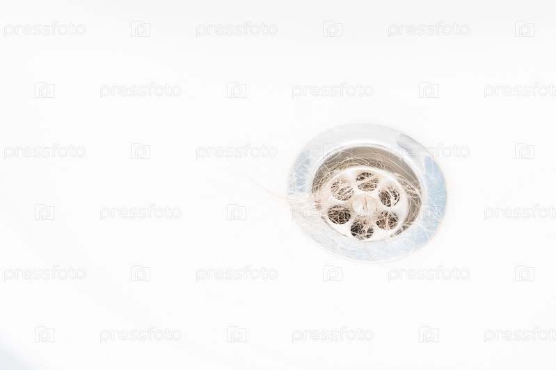 Длинные светлые волосы в раковине, вымойте волосы в раковине, засорите концепцию канализации