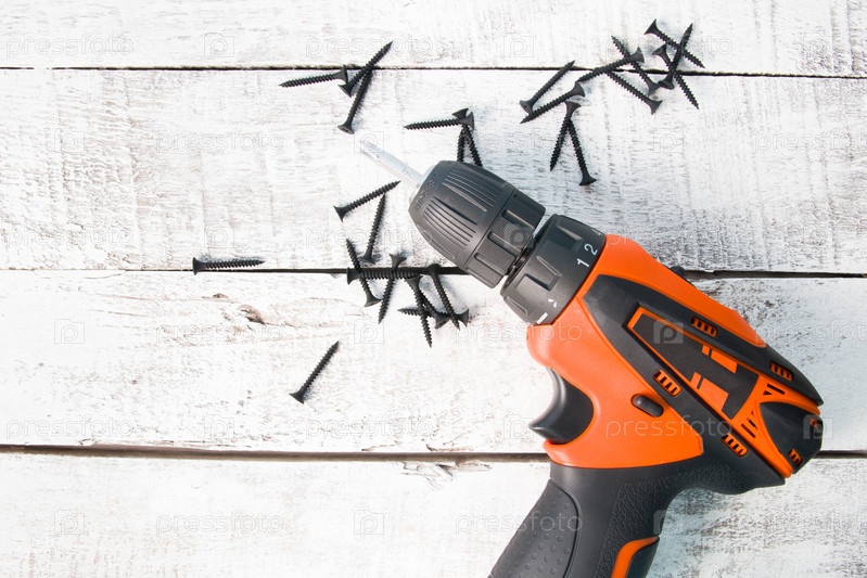 Черные шурупы черная отвертка на фоне светлой деревянной доски