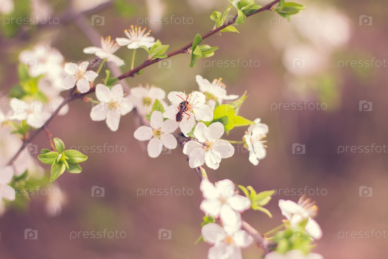 Фон весеннего цветения. Красивая сцена природы с цветением. Весенние цветы в саду. Абстрактный размытый фон