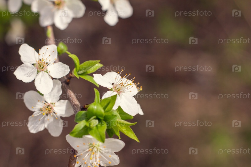 Фон весеннего цветения. Красивая сцена природы с цветением. Весенние цветы в саду. Абстрактный размытый фон