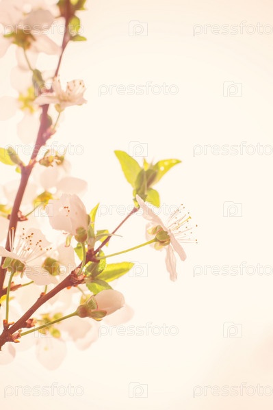 Ветка абрикоса с белыми цветами. Красивая сцена природы с цветением. Цветущие деревья весной. Фон весеннего цветения