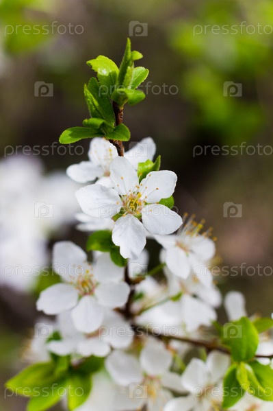 Фон весеннего цветения. Красивая сцена природы с цветением. Весенние цветы в саду. Абстрактный размытый фон