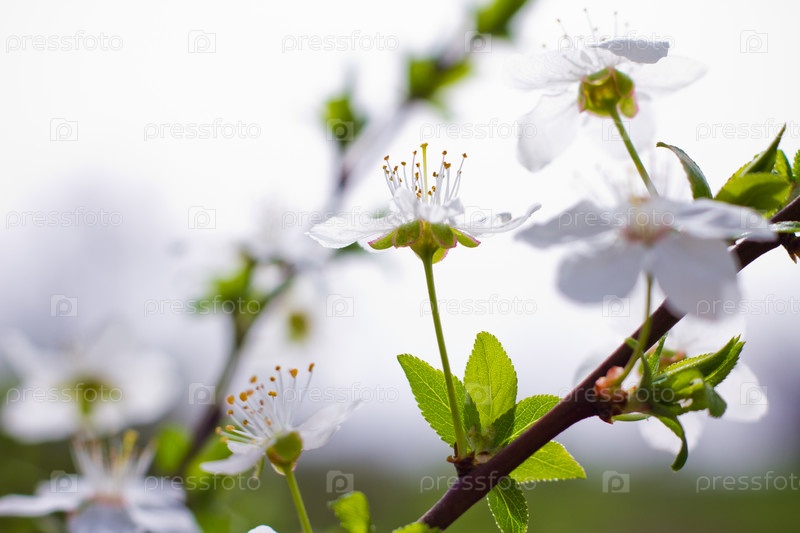 Фон весеннего цветения. Красивая сцена природы с цветением. Весенние цветы в саду. Абстрактный размытый фон