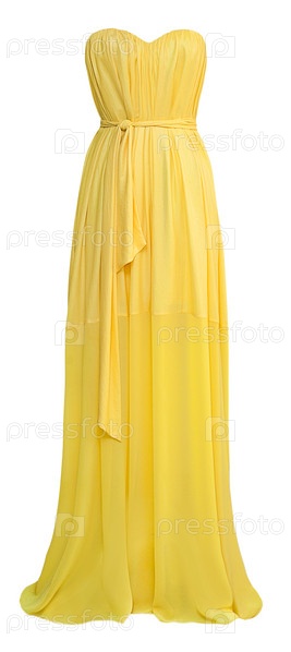 Роскошное вечернее желтое платье с изолированным на белом фоне